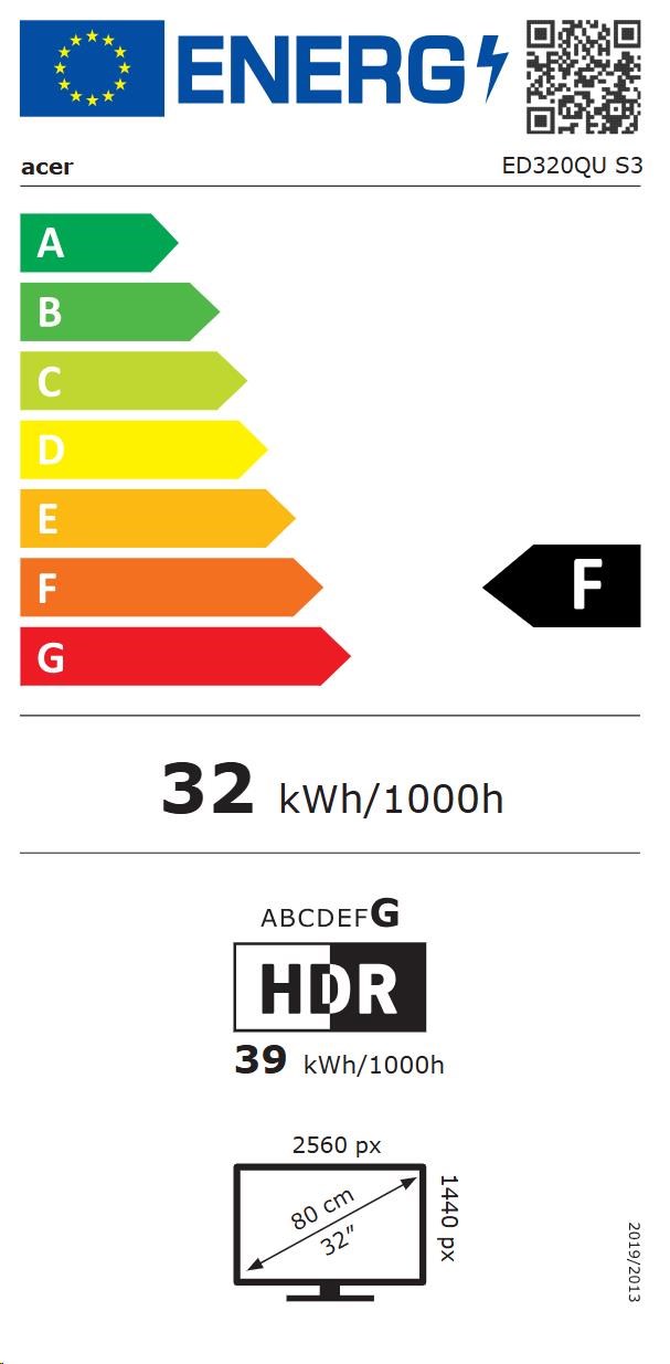 ACER LCD Nitro ED320QUS3bmiipx,31.5" Curved VA,2560x1440,180Hz,250nits,1ms,HDMI,DP,Audio,Repro,Vesa,Black