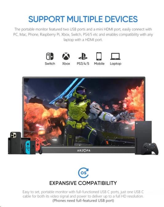 Arzopa Z1FC Portable Monitor 16.1" 144hz IPS Full HD 1080p Metal Housing Přenosný monitor + pouzdro
