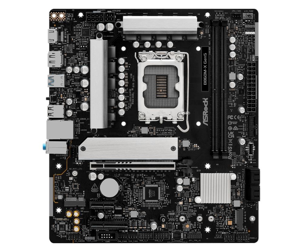 Format:micro ATX; Chipset:Intel B860; Socket:Socket 1851; Motherboard memory module type:DDR5; RAID support:0, 1, 5, 10; PCI express 16x:1