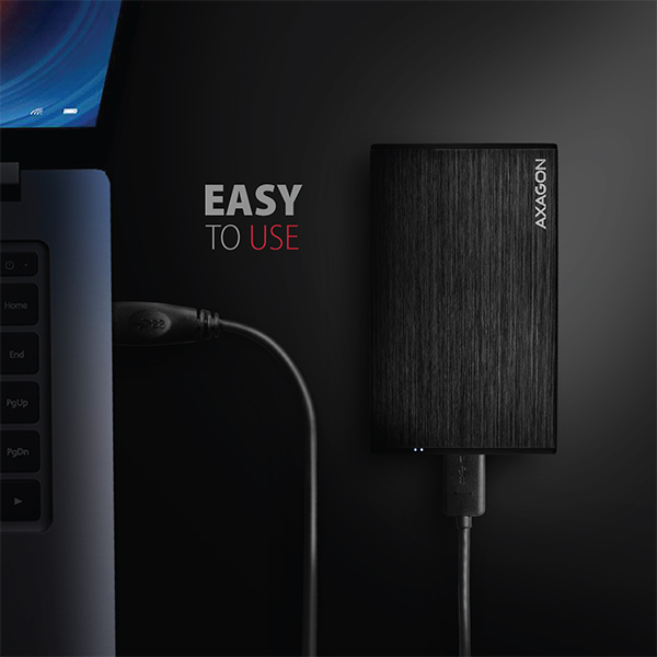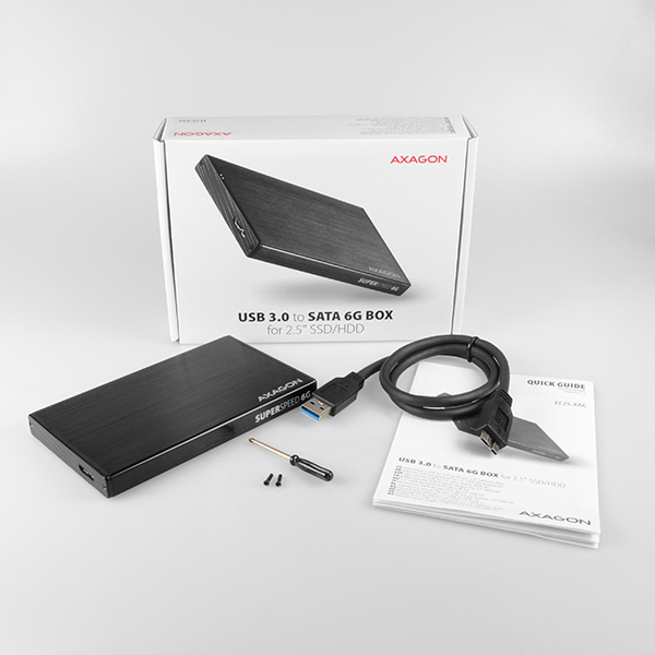 Kompaktowa aluminiowa obudowa zewnętrzna AXAGON EE25-XA6 z interfejsem USB 3.0 i SATA 6G przeznaczony na dyski trwałe 2.5" SATA lub SSD.