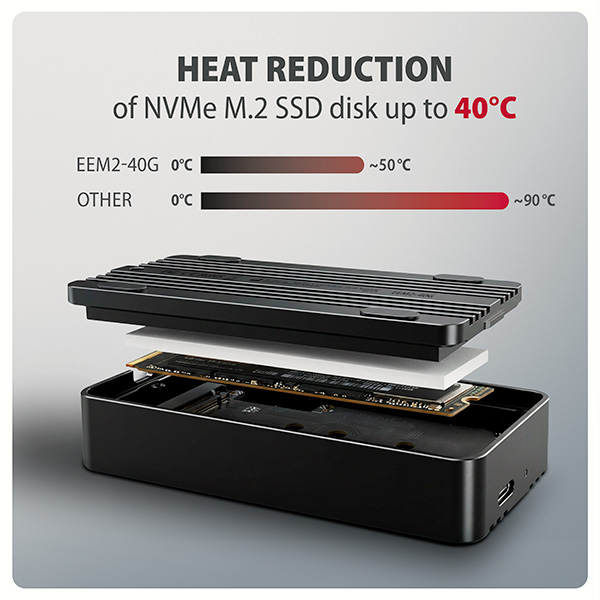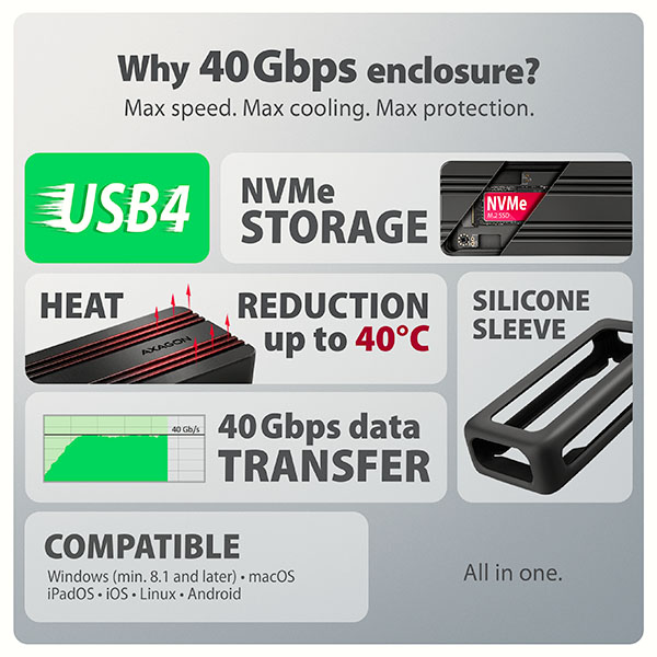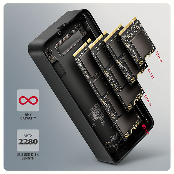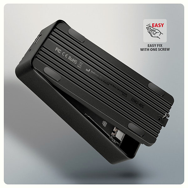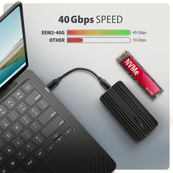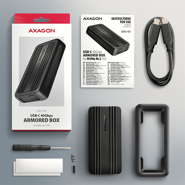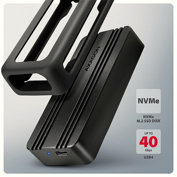 AXAGON EEM2-40G, zewnętrzna obudowa USB-C 40 Gbps do dysków M.2 NVMe SSD, wzmocnione aluminium