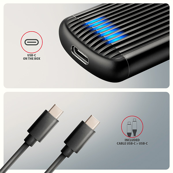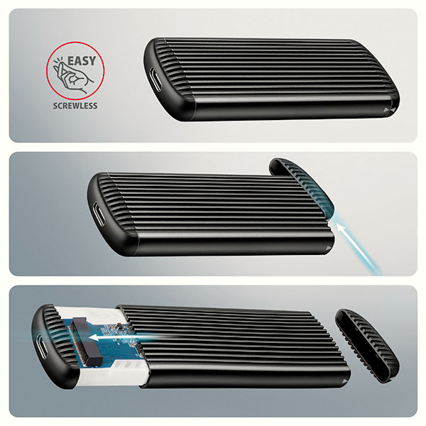 AXAGON EEM2-SC, zewnętrzna obudowa USB-C 10Gbps do dysków M.2 NVMe SSD, bezśrubowa, aluminiowa żebrowana