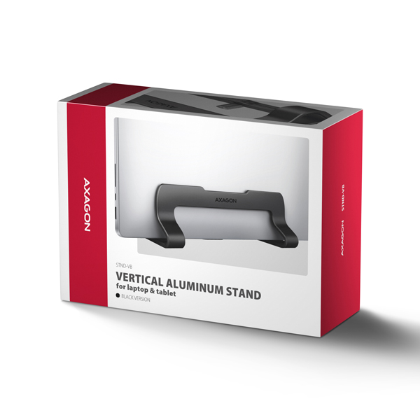 AXAGON STND-VB, aluminiowy stojak pionowy do laptopów 10"-17.3, regulowany rozstaw, czarny
