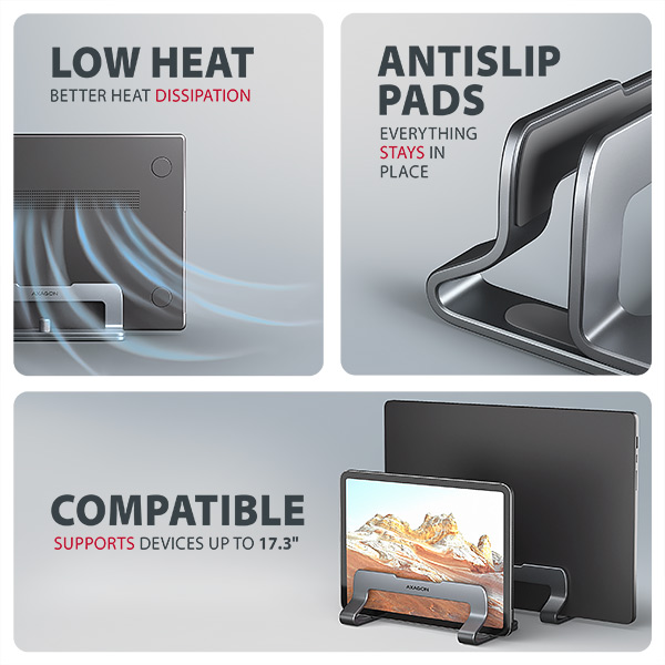 AXAGON STND-VG, aluminiowy stojak pionowy do laptopów 10"-17.3, regulowany rozstaw, szary