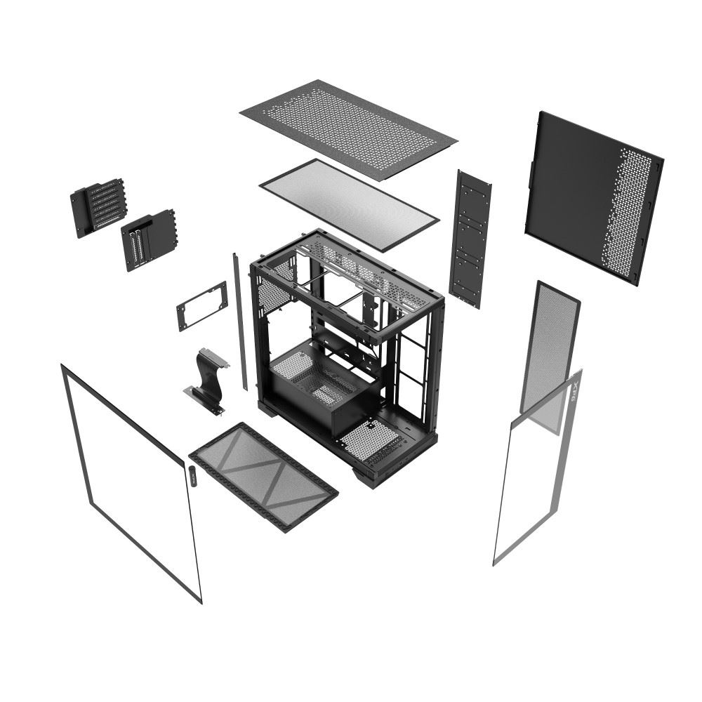 Obudowa INVADER X umożliwia łatwą instalację podstawowych płyt głównych z konektorami na tylnej stronie. Wykorzystuje zupełnie nowy design z wbudowanym kanałem na kable, zawiera pięć wstępnie zainstalowanych złączy kablowych XPG i pozostawia 36 mm przestrzeni na ułożenie kabli. Dzięki temu w obudowie jest łatwiej uporządkować kable i dostępna jest szersza przestrzeń na instalację płyty głównej.