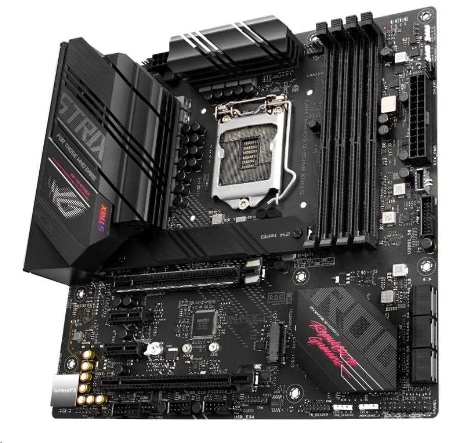 Intel® B560 LGA 1200 micro ATX motherboard with PCIe 4.0, 8+2 teamed power stages, Two-Way AI Noise Cancelation, WiFi 6 (802.11ax), Intel® 2.5 Gb Ethernet, Two M.2 slots with one slot featuring its own heatsink, USB 3.2 Gen 2x2 USB Type-C® , SATA and Aura Sync RGB lighting