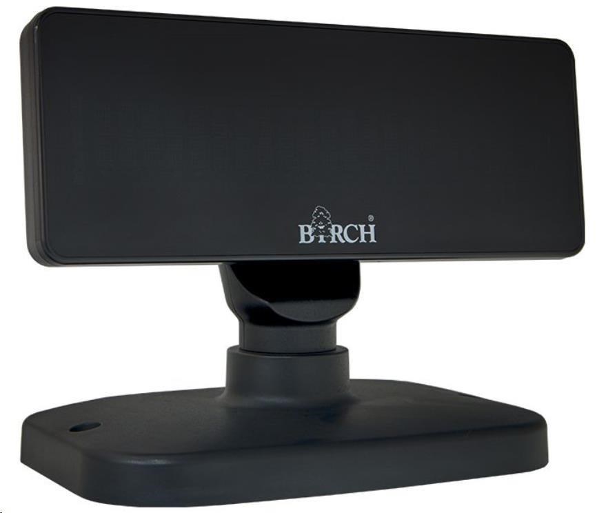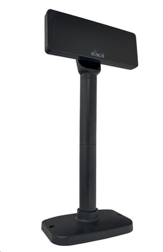 Birch DSP-V9 jest cyfrowym wyświetlaczem alfanumerycznym VFD dla kas, poczt i innych stanowisk obsługi za bezkonkurencyjną cenę. Wyświetla 40 znaków na dwóch liniach dużą, wysokodświetlającą się czcionką. Sterowanie odbywa się poprzez interfejs USB lub RS232 za pomocą standardowego języka poleceń według Twojego wyboru (LD220, DSP800, UTC/S, ESC/POS, AEDEX, CD5220 i inne). Jego głowica może być obrócona poziomo aż o 355°.