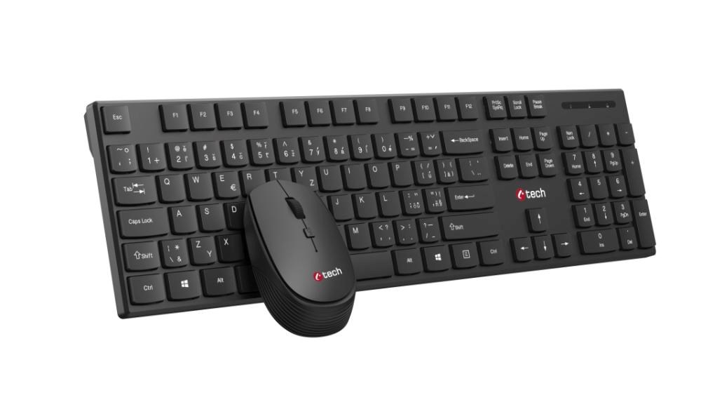BAZAR - C-TECH klávesnice s myší WLKMC-03, Bezdrátový set 2.4GHz, CZ, Černá, rozbaleno