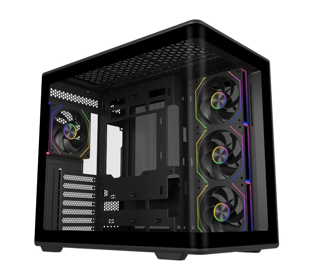 Boczny panel z najwyższej jakości hartowanego szkła zapewnia jasny, niezakłócony widok na Twoją konfigurację i pokazuje Twoje komponenty w eleganckim, nowoczesnym stylu.