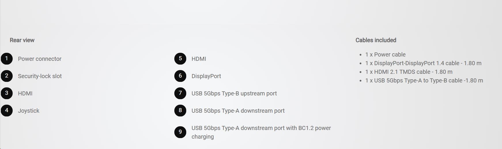 Resolution:1920×1080 (Full HD); Equipment:VESA, Adjustable Height; Picture format:16:9; Display surface:Matte; Interface:HDMI, 3.5mm Jack, DisplayPort