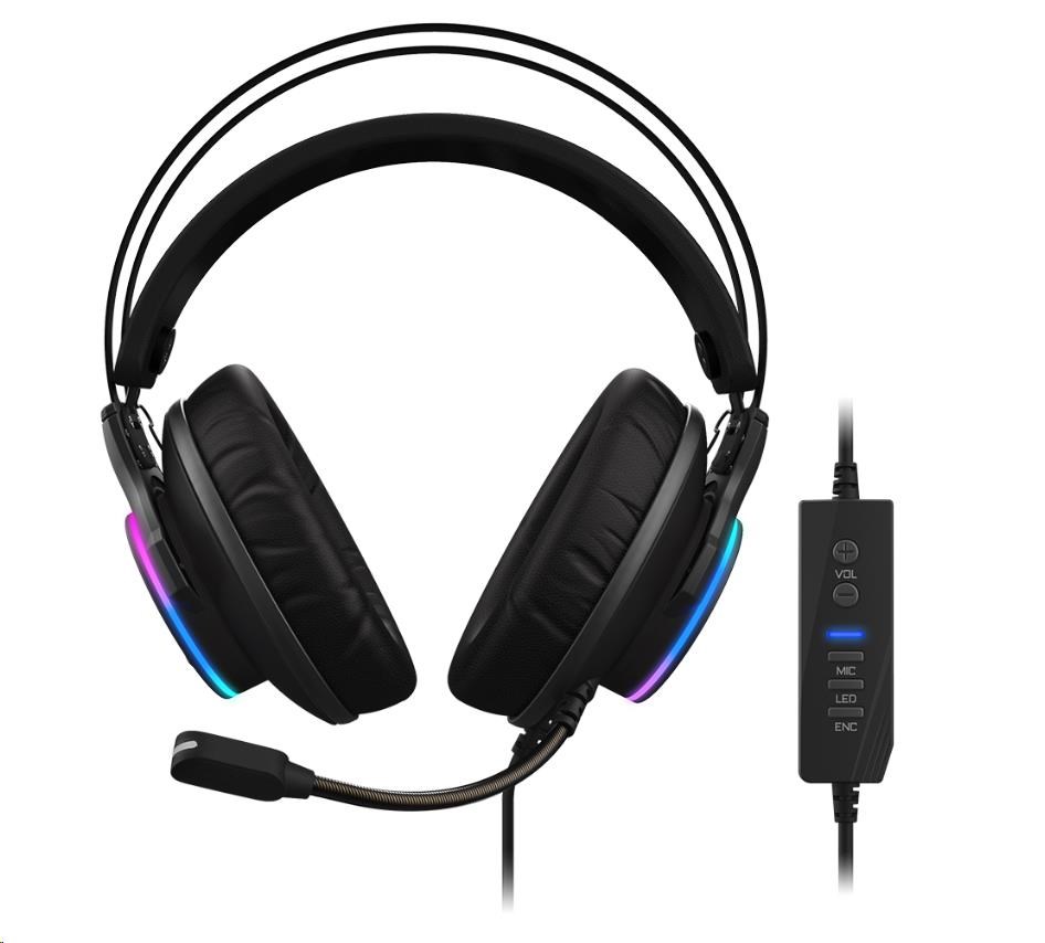 Headphone type:Full; Headphones interface:USB; Headphones properties:With a Microphone, Illuminated, Volume control