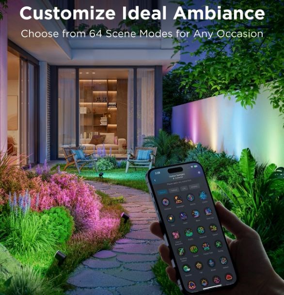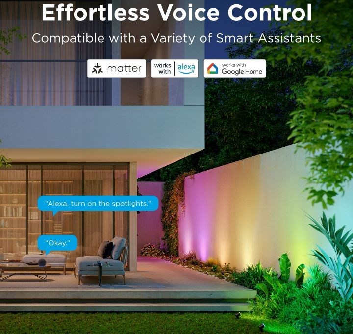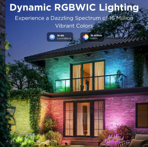 Energooszczędne reflektory ogrodowe o świetlnej wydajności 750 lm uczynią z Twojego ogrodu designerski klejnot. Dzięki technologii RGBICWW potrafią wyświetlić aż 16 milionów kolorów, a dodatkowo oferują spektrum białego od 2700 do 6500 K. Z pewnością wybierzesz spośród ponad 50 trybów oświetlenia, a podczas słuchania ulubionej muzyki możesz wybrać spośród 6 rytmicznych trybów. Lub po prostu ustaw własne kombinacje kolorów według uznania na każdym z nich. Polecenia możesz także wydawać głosem przez Siri, Amazon Alexa lub Google Assistant albo za pomocą aplikacji Govee Home na smartfonie lub tablecie. Nowo światła obsługują Matter, więc natywnie wspierają także Apple Homekit. Światło ma całkowitą długość prawie 16 metrów, a jego instalacja jest bardzo prosta. Za pomocą timera możesz automatycznie włączać i wyłączać światła zgodnie z zachodem i wschodem słońca. Światła mają stopień ochrony IP67 (oprócz źródła zasilania) i zakres temperatury pracy od -20°C do 40°C.
