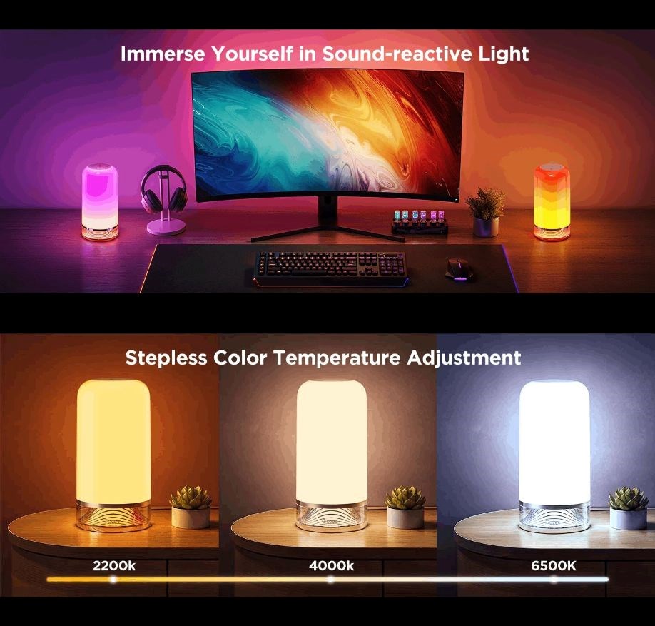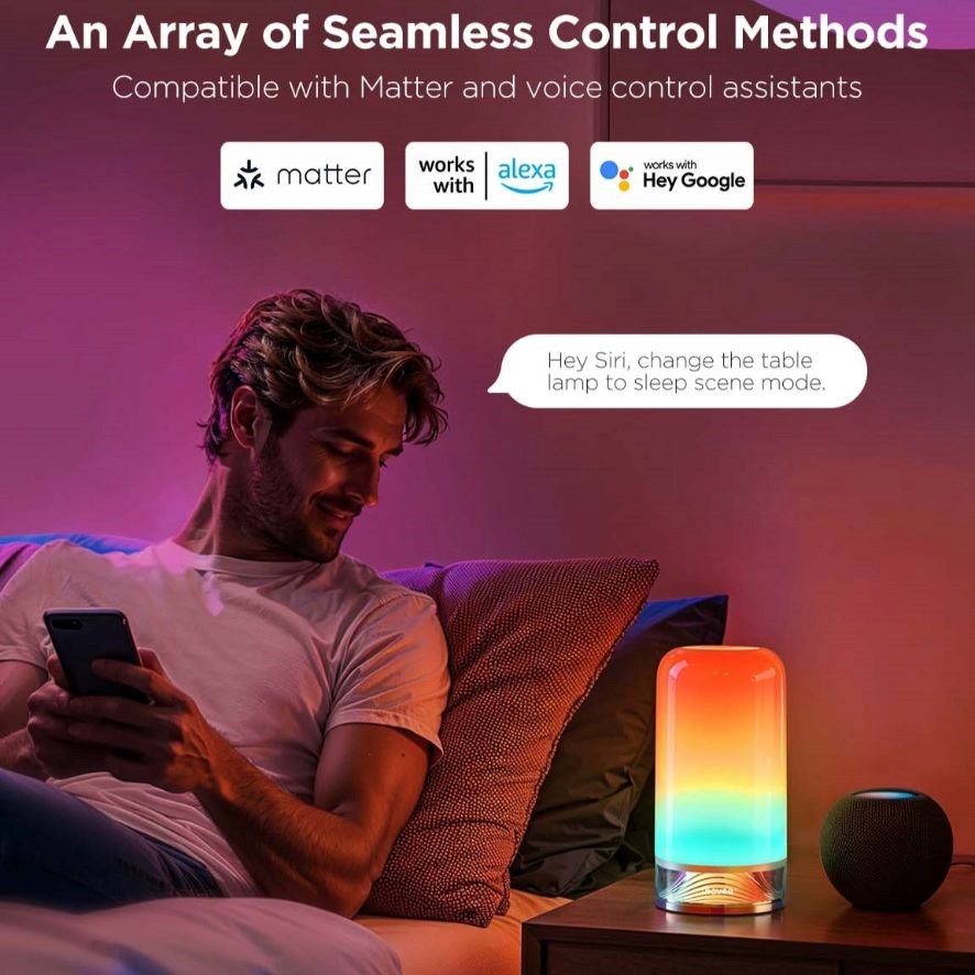 Product:Svítidla; Lighting source type:LED; Energy Class:Not Specified; Lifetime:50000 hours; Number of pieces in the package:1; Function:Color adjustment, Dimmability, Colorful ambience; Lighting type:Table decorative, Decorative, Decorative/Portable; Color of lighting:White; Compatibility:Google assistant, Amazon Alexa