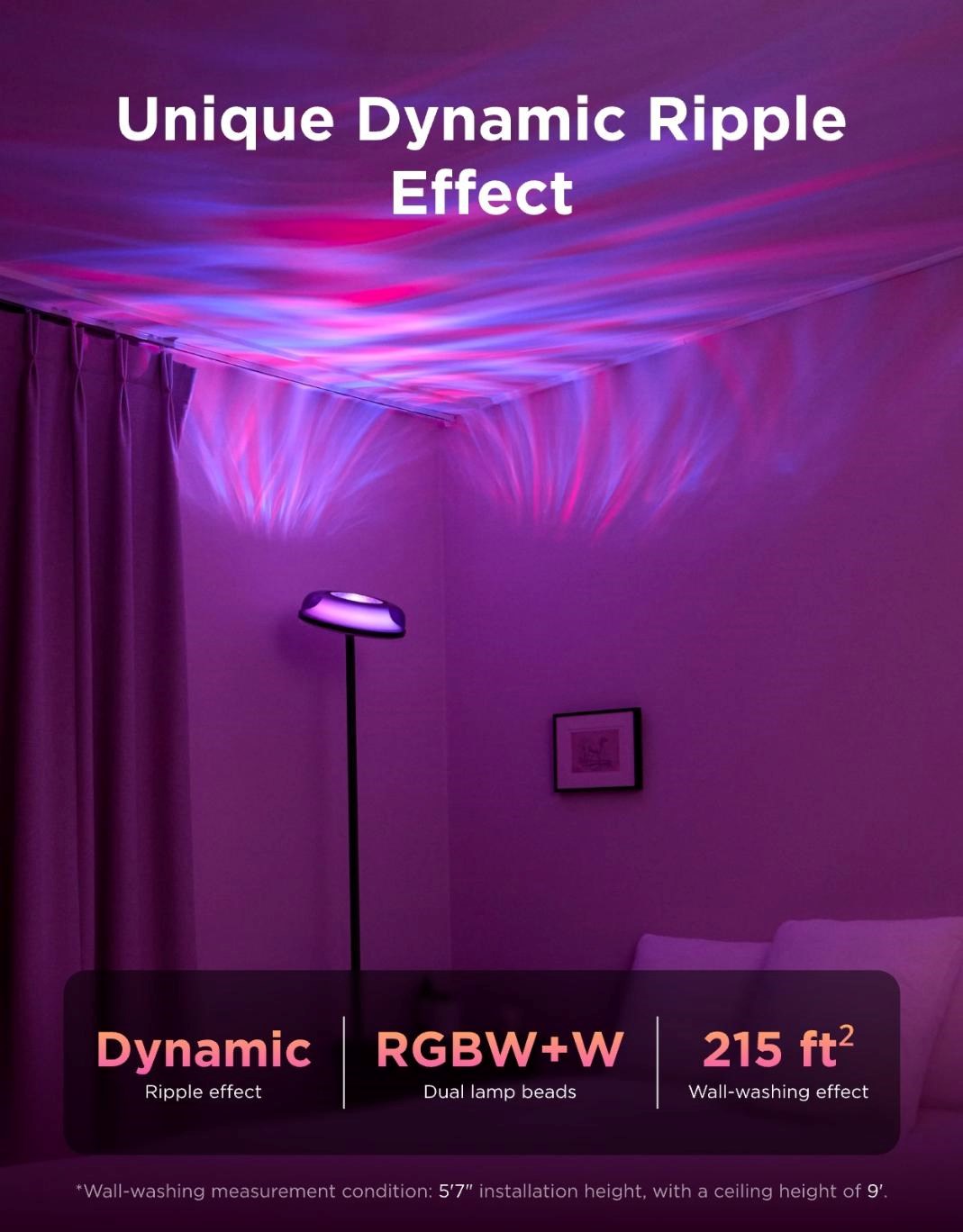- Górny efekt projekcji falistych zamienia każde ścianę w ruchome dzieło świetlne
