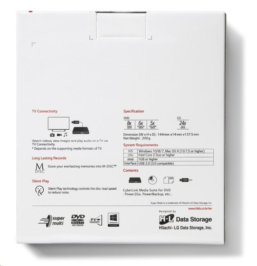 BAZAR HITACHI LG - externí mechanika DVD-W/CD-RW/DVD±R/±RW/RAM GP60NB60, Slim, Black, box+SW - POŠKOZENÝ OBAL