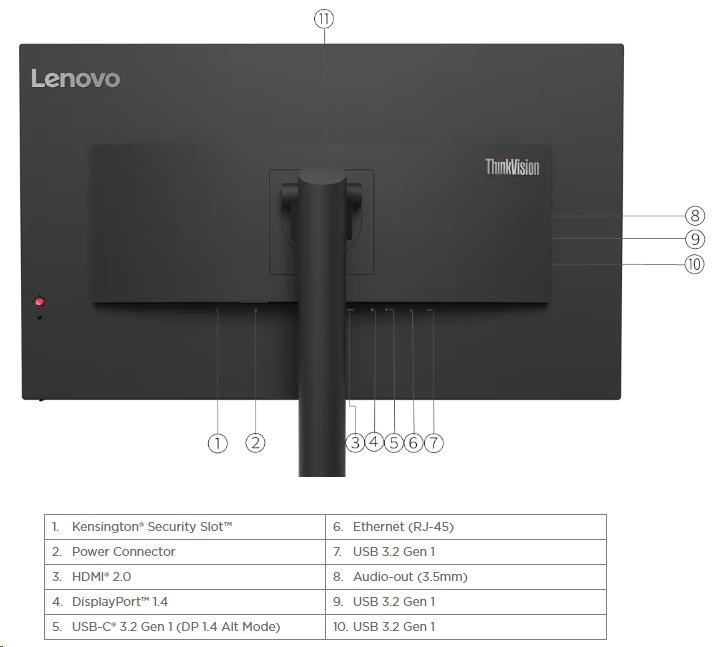 BAZAR - LENOVO LCD T32h-30 - 31.5"',IPS,matný,16:9,2560x1440,178/178,4ms,350cd/m2,1000:1,USB-C,HDMI,DP,RJ-45 - pošk obal