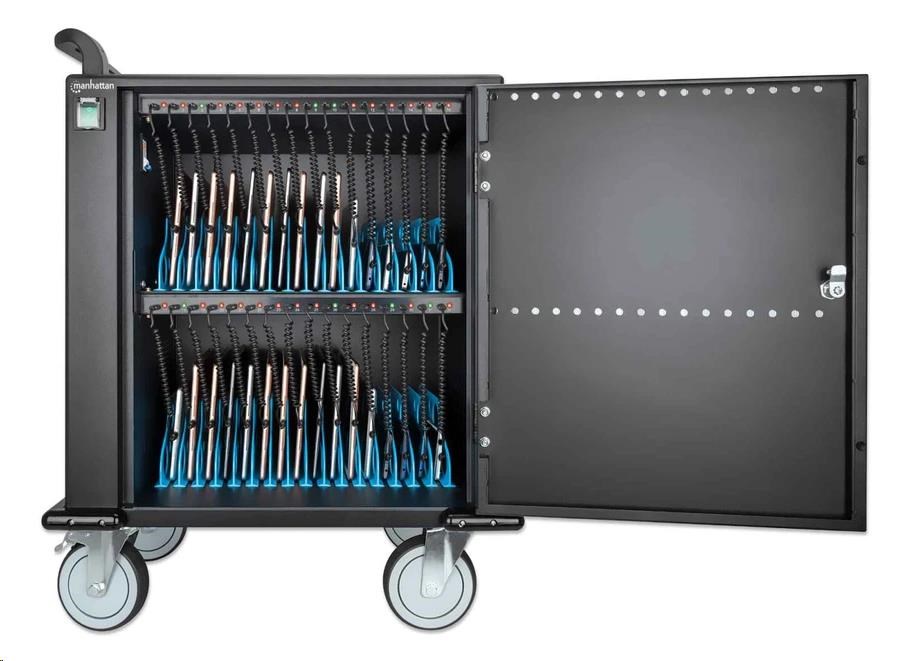 BAZAR - MANHATTAN nabíjecí vozík - 32 portů, 576 W, přepěťová ochrana, tichá ventilace, kovové pouzdro, černá - Poškozen