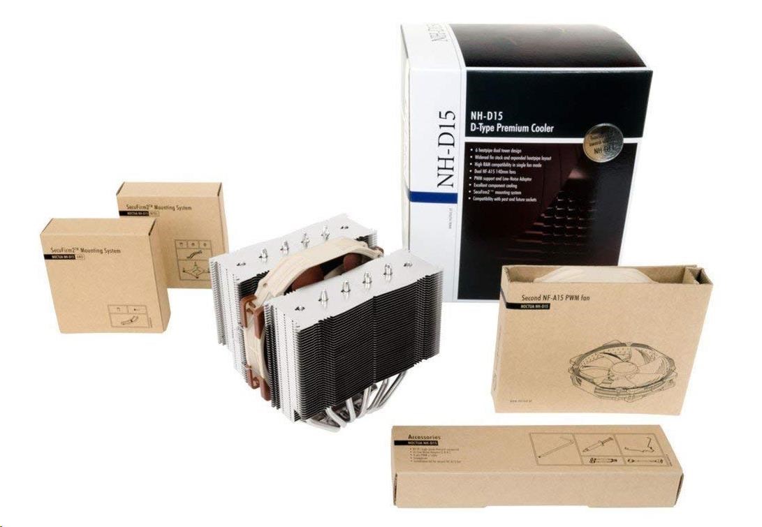 BAZAR NOCTUA Chladič CPU NH-D15, 2x 140mm, LGA1851, AM5, hnědá/stříbrná (poškozený obal)