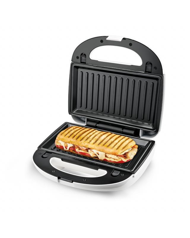 Trendem w kuchni stają się wielofunkcyjni pomocnicy, którzy nie zajmują dużo miejsca, ale potrafią wiele. W skład wielofunkcyjnego sendvičovače Orava ST-500 wchodzi aż pięć różnych desek do pieczenia, co docenią osoby przygotowujące szybkie ciepłe posiłki, których dorośli i dzieci nie mogą się nasycić. Jeśli chodzi o przygotowanie sycącego śniadania, szybkie kolacje lub słodkie przekąski jako nagroda po całym dniu pracy, czas go wyciągnąć z półki. Dzięki mocy 750 W szybko przygotujesz pyszne tosty dla swoich bliskich, ugrilujesz kurczaka, upieczesz panini, przygotujesz słodkie wafle, uwielbiane pączki i słodkie wypieki w oryginalnych formach własnego projektu. Wystarczy wybrać jedną z pięciu dołączonych desek, które dzięki przesuwanym zamkom bez wysiłku i bezpiecznie włożysz do urządzenia - i rozpocząć przygotowanie potraw. Chociaż urządzenie piecze i zapieka, możesz być pewien, że Twoje bezpieczeństwo jest zapewnione. Urządzeniu nie brakuje termicznej ochrony i wystarczająco dużej rączki, która jest dodatkowo izolowana termicznie. Czerwona lub zielona kontrolka wyraźnie wskazuje, kiedy toster pracuje na pełnych obrotach. Dzięki nieprzywierającej powierzchni deski do pieczenia są łatwe do czyszczenia, co czyni z niego toster, którego pokochasz w swojej kuchni.