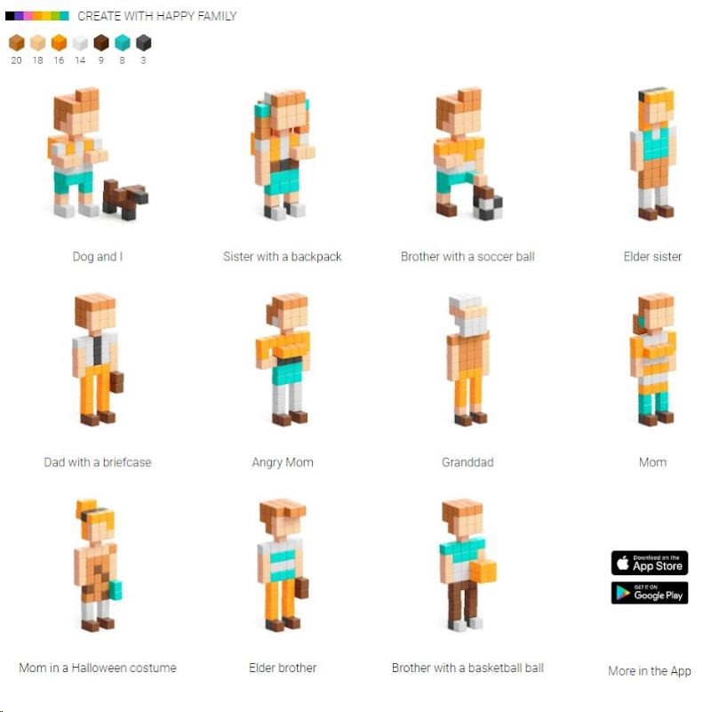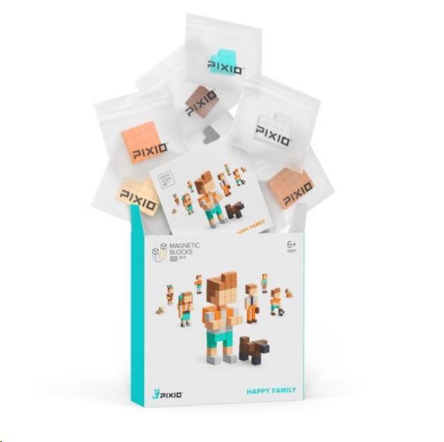 PIXIO Happy Family zawiera 88 bloków PIXIO w 7 kolorach. Umożliwi ożywienie Twoich kreatywnych pomysłów i