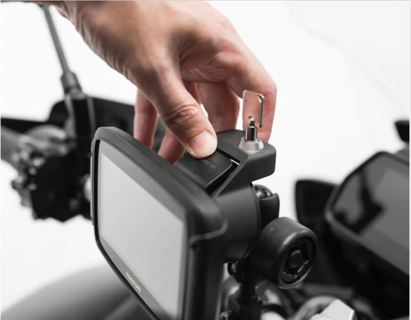 Zabezpiecz urządzenie TomTom Rider i zapobiegaj jego odłączeniu od uchwytu.