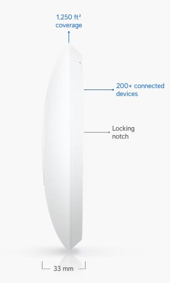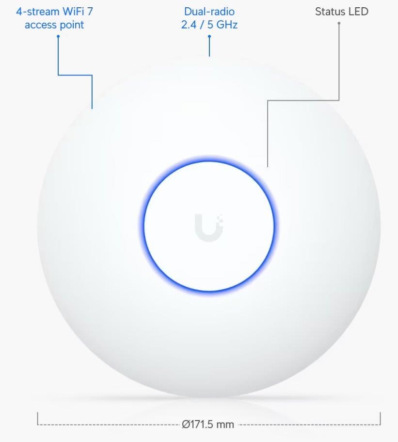 Popis produktu Ubiquiti U7-Lite jest najtańszym WiFi 7 UniFi AP. Jest to dwupasmowy punkt dostępowy z prędkością przesyłu do 4,3 Gb/s w paśmie 5 GHz i do 688 Mbps w paśmie 2,4 GHz oraz zaawansowanym szyfrowaniem WPA3. U7-Lite przeznaczony jest do pokrycia WiFi Twojego domu, biura, przestrzeni hotelowych lub magazynu. Pełne wsparcie roamingu zapewnia płynne przekazywanie podłączonych klientów między poszczególnymi AP. Do podłączenia do sieci urządzenie wyposażone jest w port 2.5G ETH, który służy także do zasilania za pomocą PoE 802.3af lub pasywnego PoE w zakresie 42,5-57V DC, zasilacz PoE nie jest częścią zestawu. Zalety rozwiązania UniFi • Roaming - przełączanie między poszczególnymi AP bez przerw • Wireless uplink – idealne do miejsc, gdzie nie można poprowadzić kabla danych • Aż 8 SSID • Szczegółowe statystyki ruchu • Sieć gościnna • Load balancing - utrzymywanie równomiernego obciążenia / przełączanie klientów • Ograniczanie prędkości dla każdego SSID Zawartość zestawu • Urządzenie • Zestaw mocujący do sufitu • Zestaw śrubek Parametry techniczne Właściwości bezprzewodowe Częstotliwości bezprzewodowe: 2,4 + 5 GHz (dual band) Standardy WiFi: 802.11n, 802.11a, 802.11ac, 802.11b/g, 802.11ax, 802.11be MU-MIMO: Tak Prędkość przesyłu - 5GHz [Mb/s]: 4300 Prędkość przesyłu - 2.4GHz [Mb/s]: 688 Moc nadawcza 2.4GHz [dBm]: 23 Moc nadawcza 5GHz [dBm]: 24 Szyfrowanie: WPA, WPA2, WPA3 MIMO 2.4GHz: 2 x 2 MIMO 5GHz: 2 x 2 Typ anteny: Wbudowana Roaming: Tak Zysk anteny [dBi]: 4, 5 Gniazda i interfejsy Prędkość LAN: (1) 100/1000/2500 Mbps Gigabit LAN: Tak Zasilanie Zasilanie przez PoE: 802.3af, 42 .. 57V DC Typy PoE: PoE-In (tylko) Maksymalny pobór mocy [W]: 13 Właściwości fizyczne Przeznaczenie: Wewnątrz Przyciski: Reset Temperatura pracy [°C]: -30 do 40 Waga [g]: 313 Szerokość [mm]: 172 Wysokość [mm]: 172 Głębokość [mm]: 33 Oprogramowanie Tryb operacji: Access PointOpis produktu został przetłumaczony przez sztuczną inteligencję i może zawierać nieścisłości.