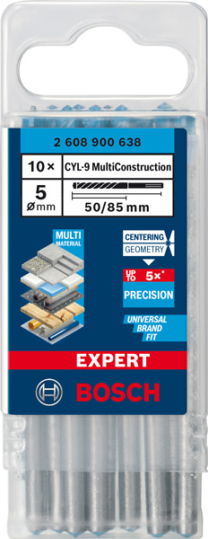 Bosch spirálový vrták EXPERT CYL-9 MultiConstruction 5 × 50 × 85 mm, 10 ks