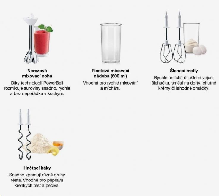 Braun MultiMix 5 HM5107WH ruční šlehač a tyčový mixér, bílá, příkon 750 W, 9 rychlostí, technologie SmartMix