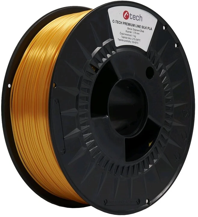 C-TECH Tisková struna (filament) PREMIUM LINE, Silk PLA, dopravní žlutá, RAL1023, 1,75mm, 1kg