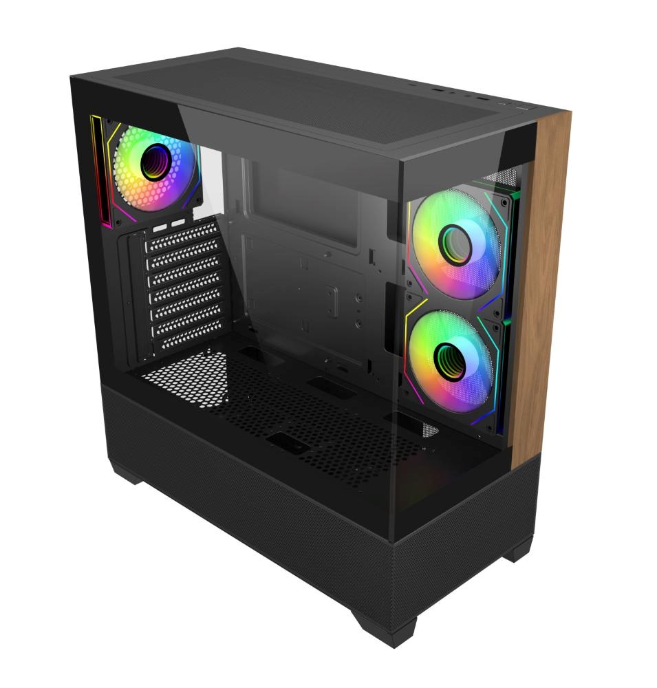 Cooler Master case Elite 690 Wood, ATX, Průhledná bočnice, 3x 120mm ARGB Fan, Černá