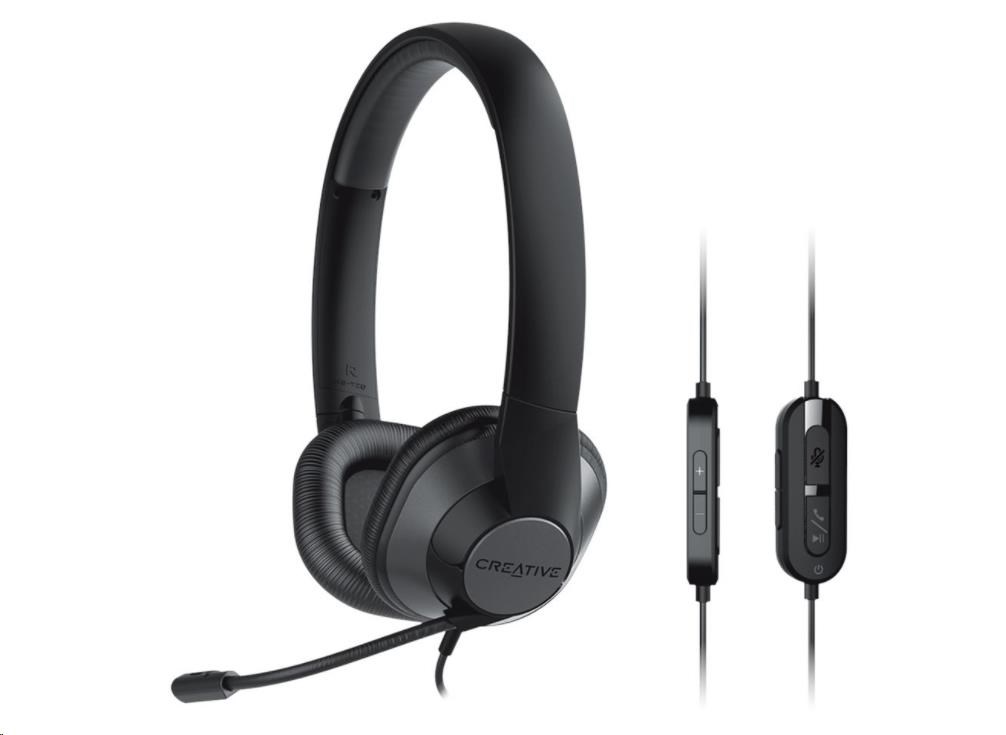 Creative HS-720 V2 ma wszystko, czego potrzebujesz do pracy przez telefon: mikrofon z potlačením šumu, odbicie mikrofonu do kontroli głośności i zintegrowany pilot z przyciskiem wyciszenia mikrofonu i odbioru połączenia.