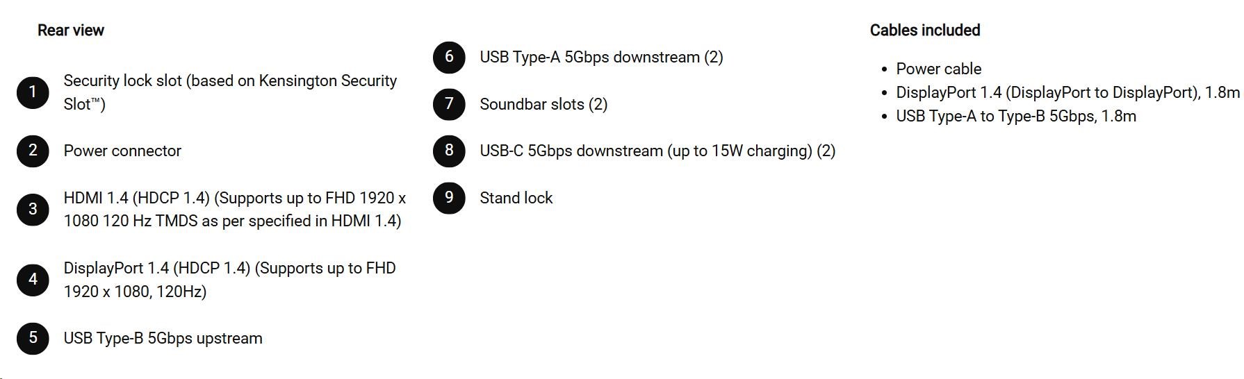 Resolution:1920×1080 (Full HD); Equipment:VESA, Pivot, Adjustable Height; Picture format:16:9; Display surface:Matte; Interface:HDMI, USB 3.2, DisplayPort