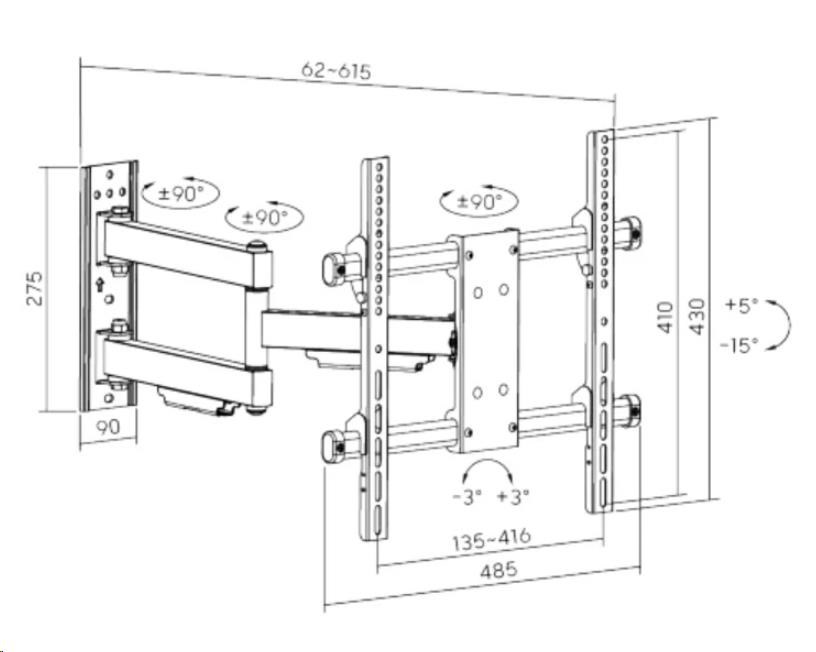 Obrotowa składana wysuwana półka na Tv Fiber Mounts RAPTOR Wysokiej jakości uchwyt na TV 43" - 60", odległość od ściany 62 - 615mm, obrotowy do +90° / -90°, kątownik +5° / -15°, wysokiej jakości solidna konstrukcja, uchwyty na kable, materiał montażowy, VESA 200x100 do 400x400, nośność 50kg, ???????? 10 lat Wysokiej jakości ścienny uchwyt na telewizor Fiber Mounts RAPTOR Prezentujemy Fiber Mounts RAPTOR - wysokiej jakości uchwyt do telewizora, który przemieni Twój salon w dynamiczne centrum multimedialne. Z Fiber Mounts RAPTOR każdy wieczór filmowy stanie się niezapomnianym przeżyciem, a każdy transmisja sportowa tak żywa, jakbyś był na stadionie. Nie daj się ograniczać statycznemu ustawieniu telewizora. Dzięki obrotowemu mechanizmowi +90° / -90° i kątownikowi +5° / -15° możesz ustawić ekran dokładnie według własnych potrzeb. Niezależnie od tego, czy chcesz oglądać ulubiony film z wygodnego kanapy, fotela, czy musisz dostosować kąt widzenia podczas wideorozmowy, Fiber Mounts RAPTOR umożliwi Ci to z łatwością. Ponadto, odległość od ściany 62 - 615mm zapewnia Fiber Mounts RAPTOR nie tylko elastyczność w umieszczeniu, ale także łatwy dostęp do portów tylnej części telewizora do szybkiego podłączenia lub odłączenia urządzeń. Dzięki solidnej konstrukcji i nośności do 50kg możesz mieć pewność, że Twój telewizor 43" - 60" będzie bezpieczny. Nie zapomnieliśmy również o estetyce. Dzięki uchwytom na kable Twój salon zawsze będzie wyglądał schludnie i uporządkowanie, bez rozpraszających kabli wiszących z telewizora. A wraz z dołączonym materiałem montażowym i 10-letnią gwarancją montaż i użytkowanie Fiber Mounts RAPTOR to pestka. Telewizyjny uchwyt wysokiej jakości solidnej konstrukcji Fiber Mounts RAPTOR Dane techniczne: udźwig 50kg obsługa standardów VESA do zawieszania TV 200x100 do 600x400 idealny na telewizory i ekrany od 43" do 60" regulowana odległość od ściany 62 - 615mm obrót ekranu na boki do +90° / -90° kątownik +5° / -15° korekta płaszczyzny ekranu +3° / -3° wysokiej jakości, bardzo solidna konstrukcja uchwyty na kable ścienny uchwyt o wymiarach 275 x 90mm kolor czarny ???????? 10 latOpis produktu został przetłumaczony przez sztuczną inteligencję i może zawierać nieścisłości.