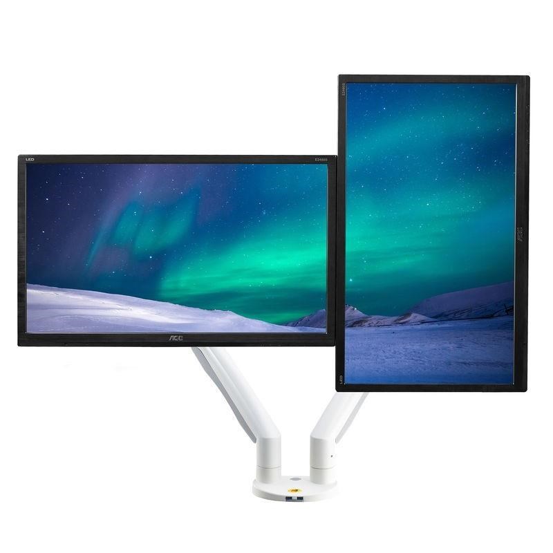 Dvoumonitorový stolní držák NB F195AW Profesionální stolní držák na 2 monitory 21-32", 3D nezávislé nastavení polohy, bílé provedení, profesionální kvalita Špičkový stolní držák pro zavěšení 2 monitorů a jejich nezávislé nastavení polohy: otáčení do stran, nastavení výšky, nastavení vzdálenosti od stolního úchytu, náklon, rotace obrazovky, korekce roviny. Různé nastavení polohy monitorů - vedle sebe na šířku, vedle sebe na výšku, pod sebou na šířku, nebo jeden monitor na šířku a druhý na výšku. Hmotnost každého monitoru musí být v rozmezí 3-9kg. Balení obsahuje 2 typy úchytů na stolovou desku, instalační materiál a návod. Barevné provedení bílé. Záruka 3 roky. Bílý držák na dva monitory, polohovatelný, profesionální kvality, záruka 3 roky - Mounts F195AWProfesjonalny biały uchwyt na 2 monitory, różne pozycje monitorów, w pełni regulowany uchwyt, TOP jakość - Mounts F195AW Biały uchwyt na dwa monitory, do biura, pracowni, szpitala, gabinetu. Najlepsza jakość, łatwa regulacja pozycji. Uchwyt 2 monitorów Mounts F195AW Techniczne dane: całkowita nośność 18kg waga każdego monitora musi mieści się w zakresie 3 ÷ 9 kg wsparcie standardu VESA 75x75 oraz 100x100 w razie potrzeby za dopłatą możliwość rozszerzenia VESA na 200x100 lub 200x200 zalecany rozmiar ekranów 21" do 32" niezależna regulacja wysokości: min. 220mm, maks. 565mm niezależne obracanie monitora na boki +/- 180° niezależne pochylanie monitora +53° do -8° niezależna rotacja monitora - obrót na szerokość lub na wysokość, korekcja płaszczyzny niezależne ustawienie odległości od stolowego uchwytu: 0mm do 700mm Montaż na blacie o średnicy 10mm do 90mm zawiera 2 typy mocowań na blat (na krawędź, do wnętrza) 2x port USB doskonała jakość, estetyczny design łatwa regulacja pozycji monitorów niezawodność, bezpieczeństwo kolor biały, srebrny lub czarny zabezpieczenie gwarancją 3 lata Mounts F195AW - biały stolny uchwyt do niezależnego mocowania i regulacji dwóch monitorów Dvoumonitorowy stolny uchwyt NB F195AW obsługuje standardy VESA: VESA 75x75 VESA 100x100 za dopłatą rozszerzenie na VESA 200x100 za dopłatą rozszerzenie na VESA 200x200 Biały uchwyt na dwa monitory Mounts F195AW Bardzo ładny biały uchwyt na dwa monitory, niezależna regulacja każdego monitora, łatwa w ustawieniu, profesjonalna jakość i wykonanie. Idealny uchwyt do nowoczesnych biur, gabinetów, szpitali lub pracowni.Opis produktu został przetłumaczony przez sztuczną inteligencję i może zawierać nieścisłości.