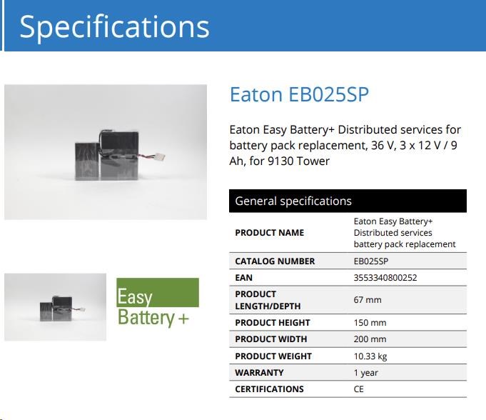 Eaton náhradní baterie k UPS, 36 V, 3 x 12 V / 9 Ah, for 9130 Tower