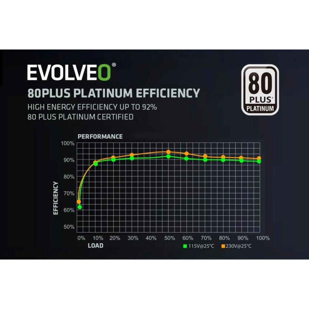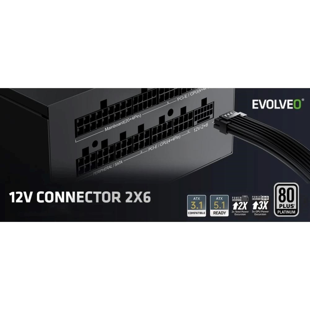 EVOLVEO P1000 zdroj 1000W, 80+ PLATINUM, ATX 3.1, aPFC, 140 mm ventilátor, 3 roky záruka, černý