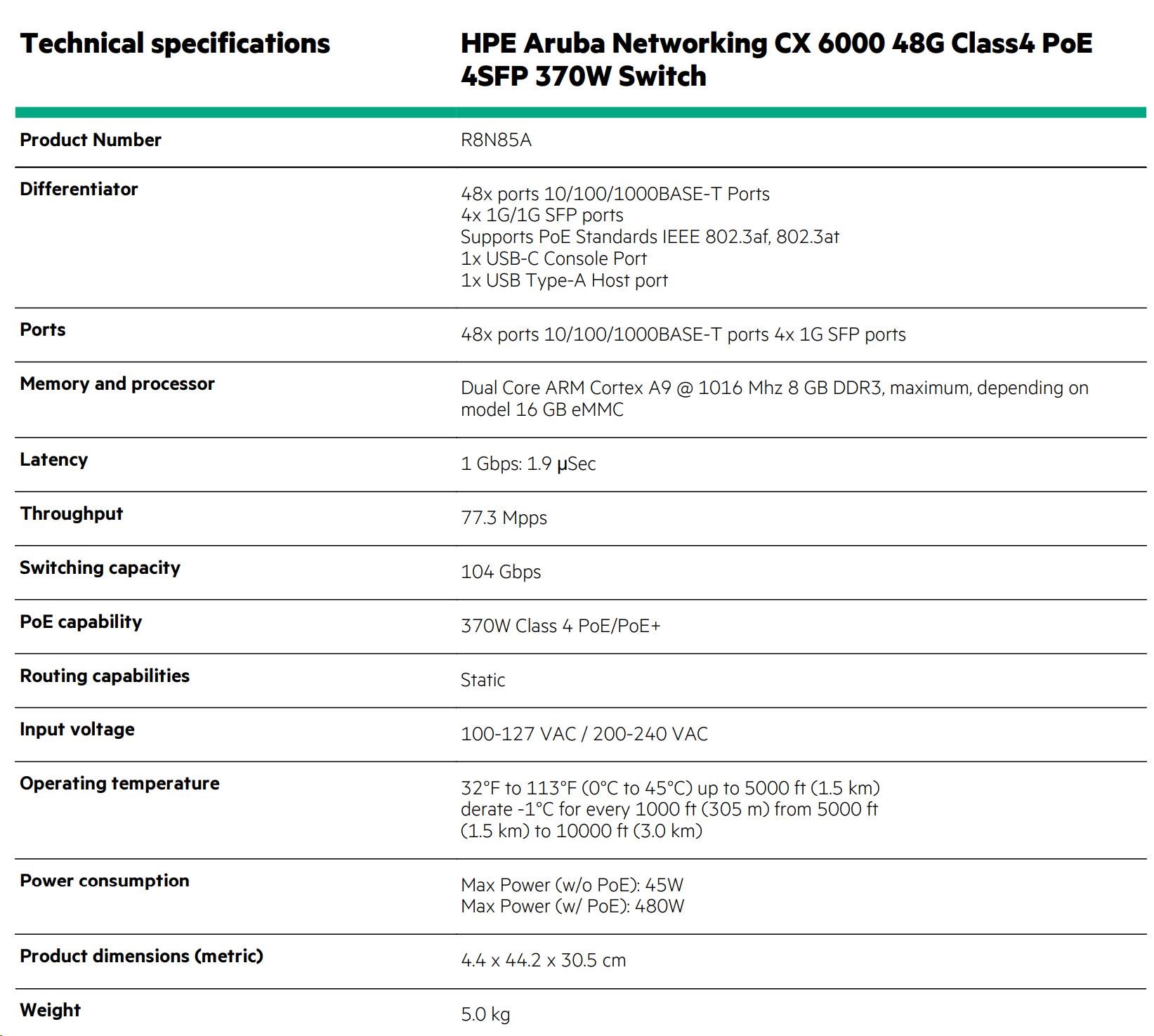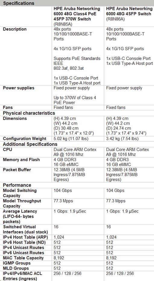 HPE Aruba Networking CX 6000 48G 4SFP Switch