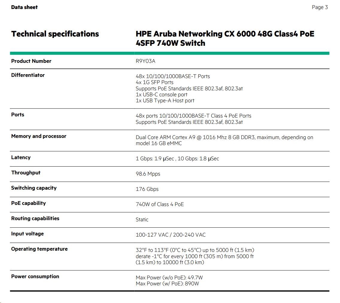 HPE Aruba Networking CX 6000 48G Class4 PoE