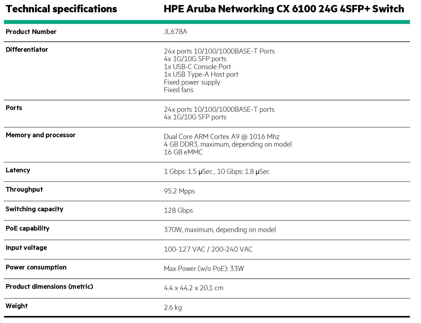 HPE Aruba Networking CX 6100 24G 4SFP+ Switch JL678A RENEW