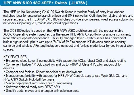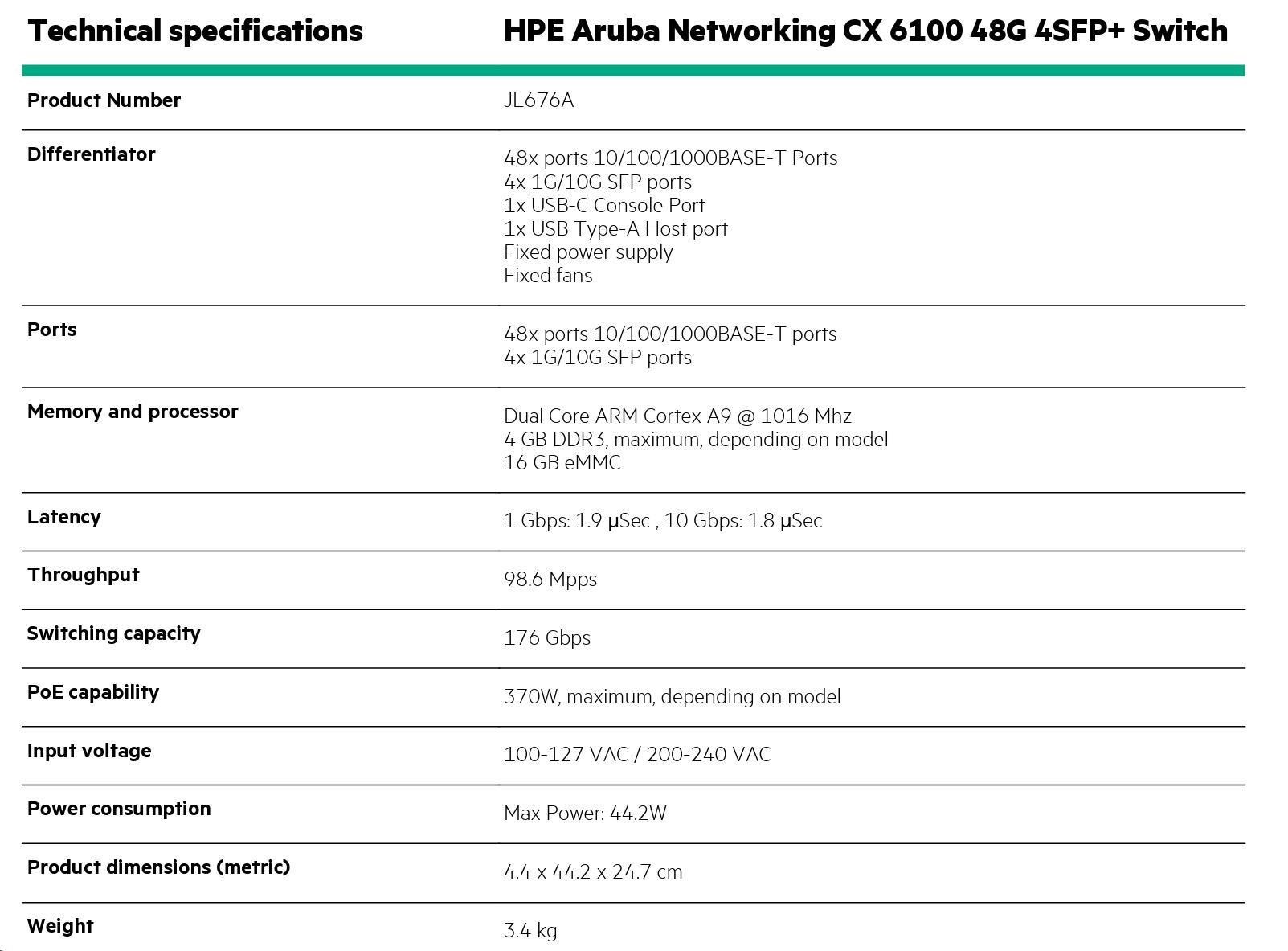 HPE Aruba Networking CX 6100 48G 4SFP+ Switch