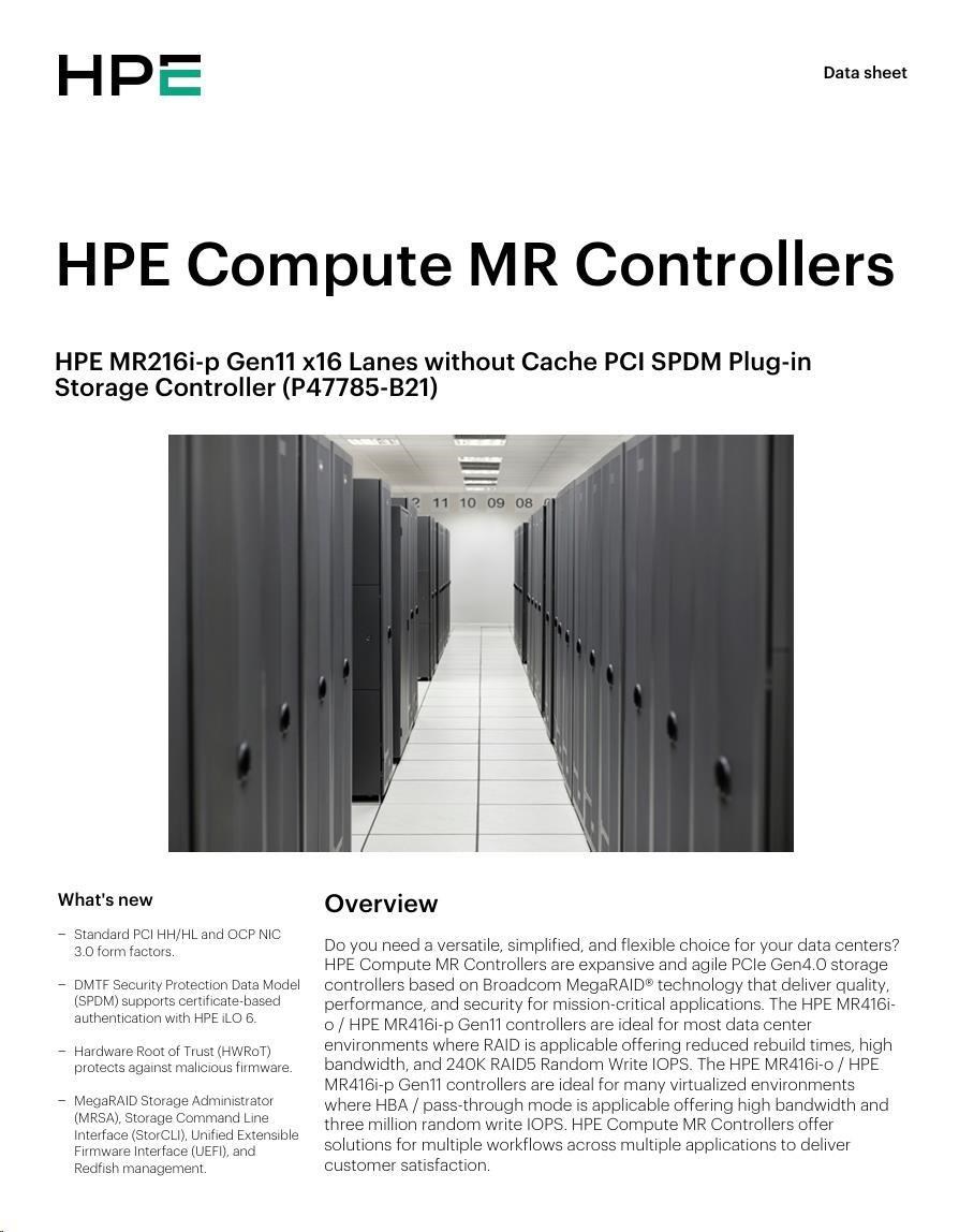 HPE MR216i-p Gen11 16 Internal Lanes/No Cache SPDM PCI Plug-in Storage Controller (raid 0,1,10 only)