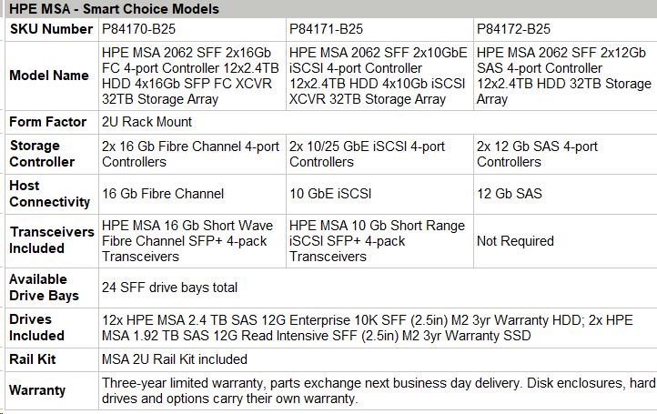HPE MSA 2062 SFF 2x10GbE iSCSI 4-port Controller 12x2.4TB HDD 4x10Gb iSCSI XCVR 32TB Storage Array Smart Choice