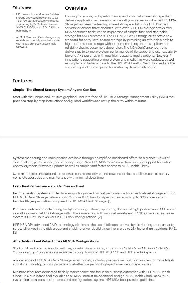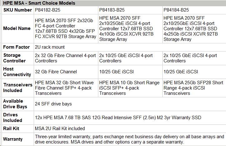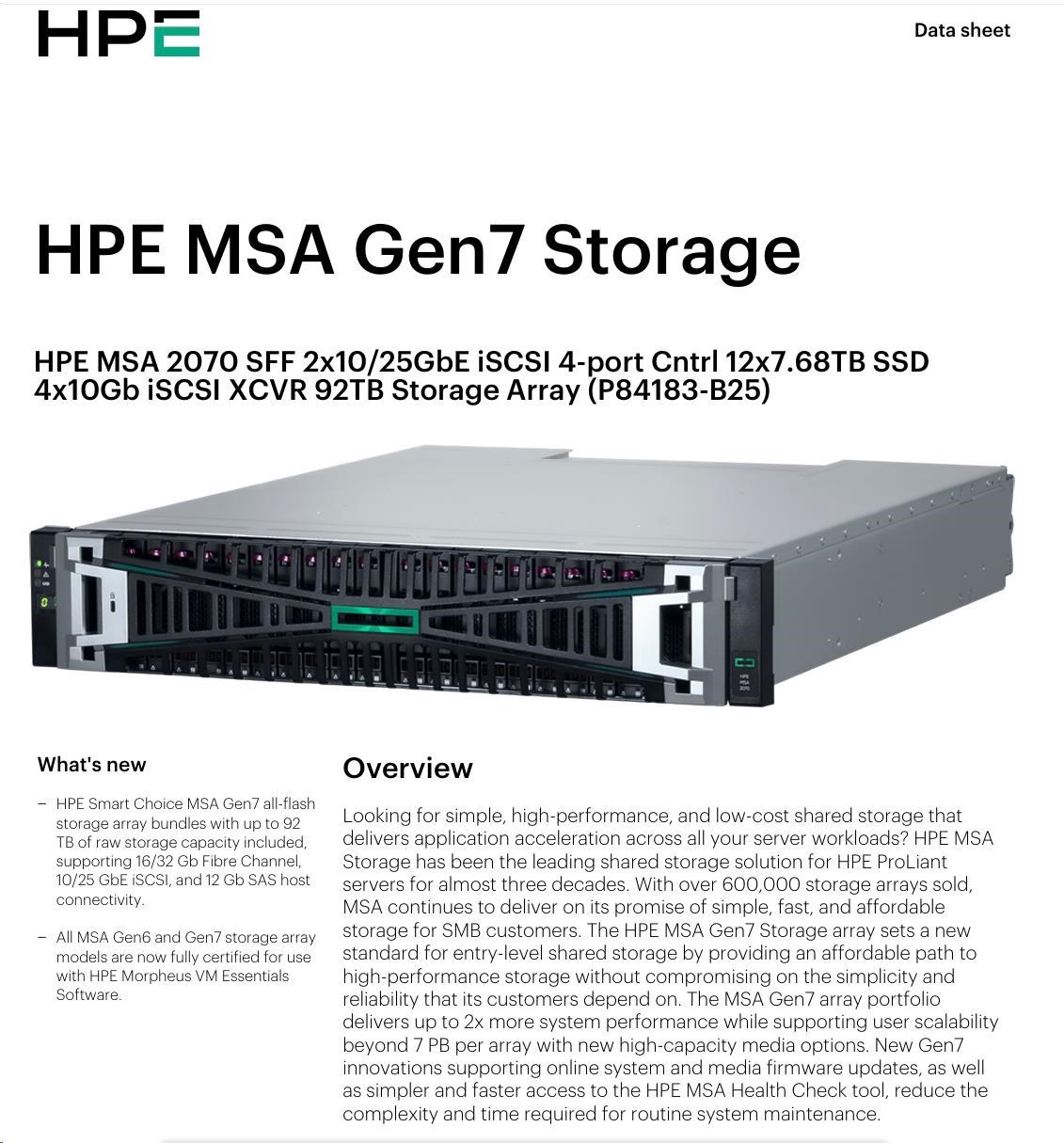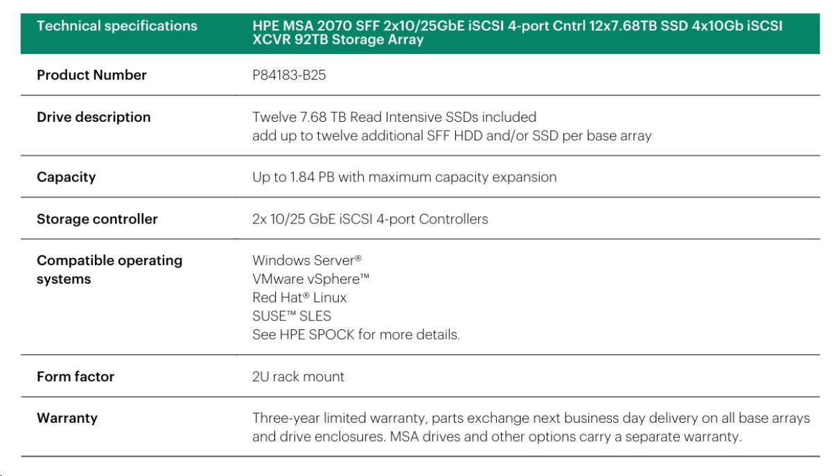 HPE MSA 2070 SFF 2x10/25GbE iSCSI 4-port Controller 12x7.68TB SSD 4x10Gb iSCSI XCVR 92TB Storage Array Smart Choice