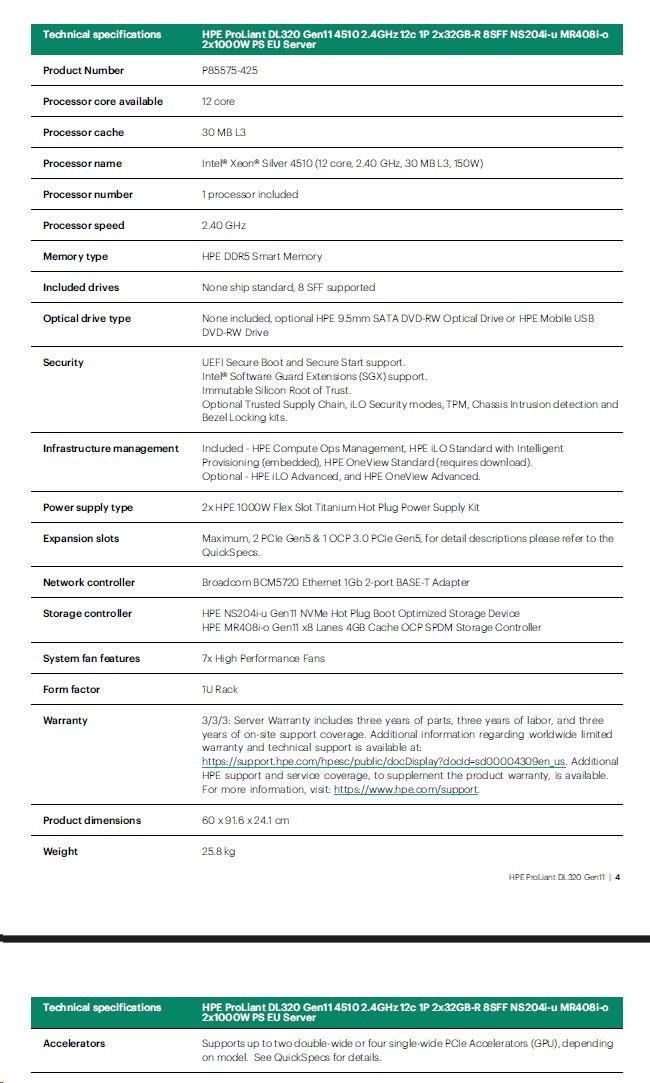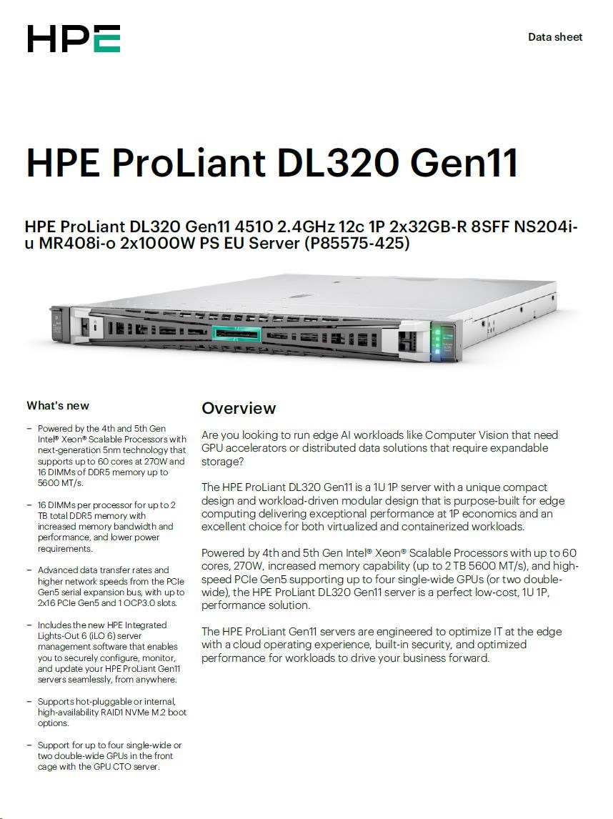 HPE PL DL320g11 4510 (2.4/12C) 2x32G (p64706) NS204(2x480) MR408i-o 8SFF 2x1000W 2p1G Smart Choice