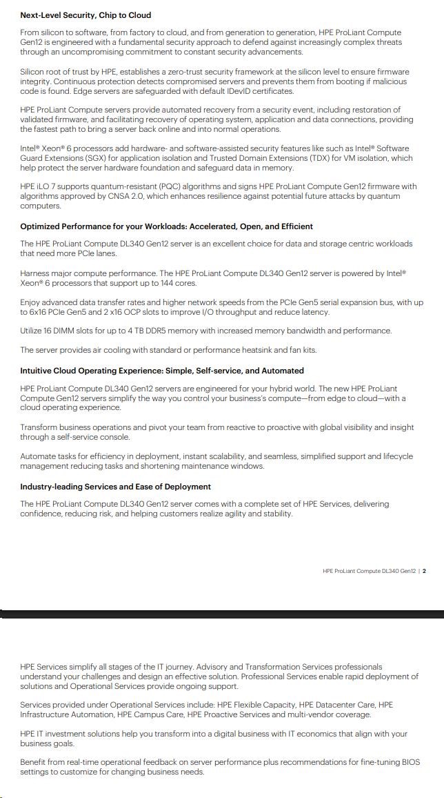 HPE PL DL340 Gen12 6515P (2.4/16C) 1x64G (P69728) NS204(2x480) MR416i-o 8SFF 2x1000W 10GbE P26253 NBD333 Smart Choice