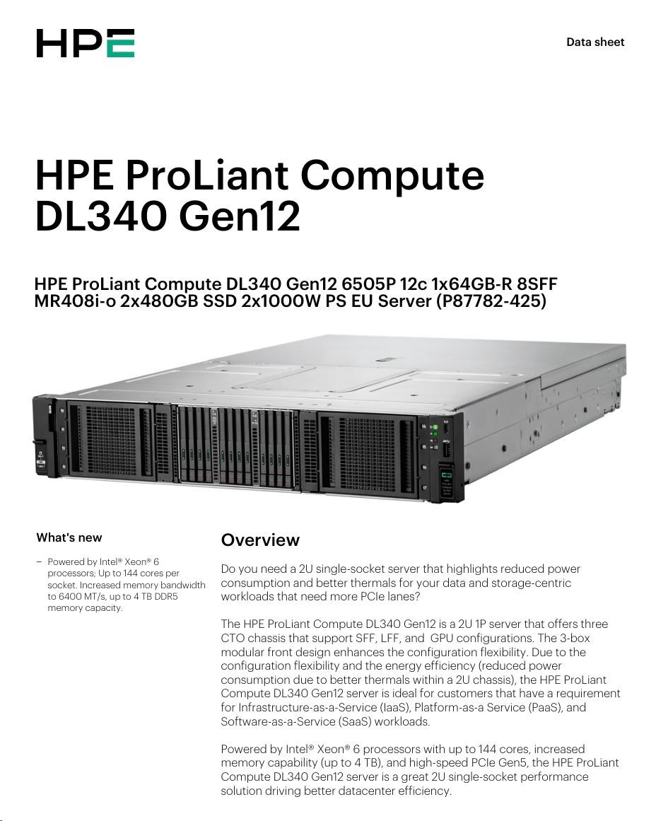 HPE PL DL320 Gen12 6505P (2.2/12C) 1x64G (P69728) 2x480G MR408i-o 8SFF 2x1000W 1GbE NBD333 Smart Choice