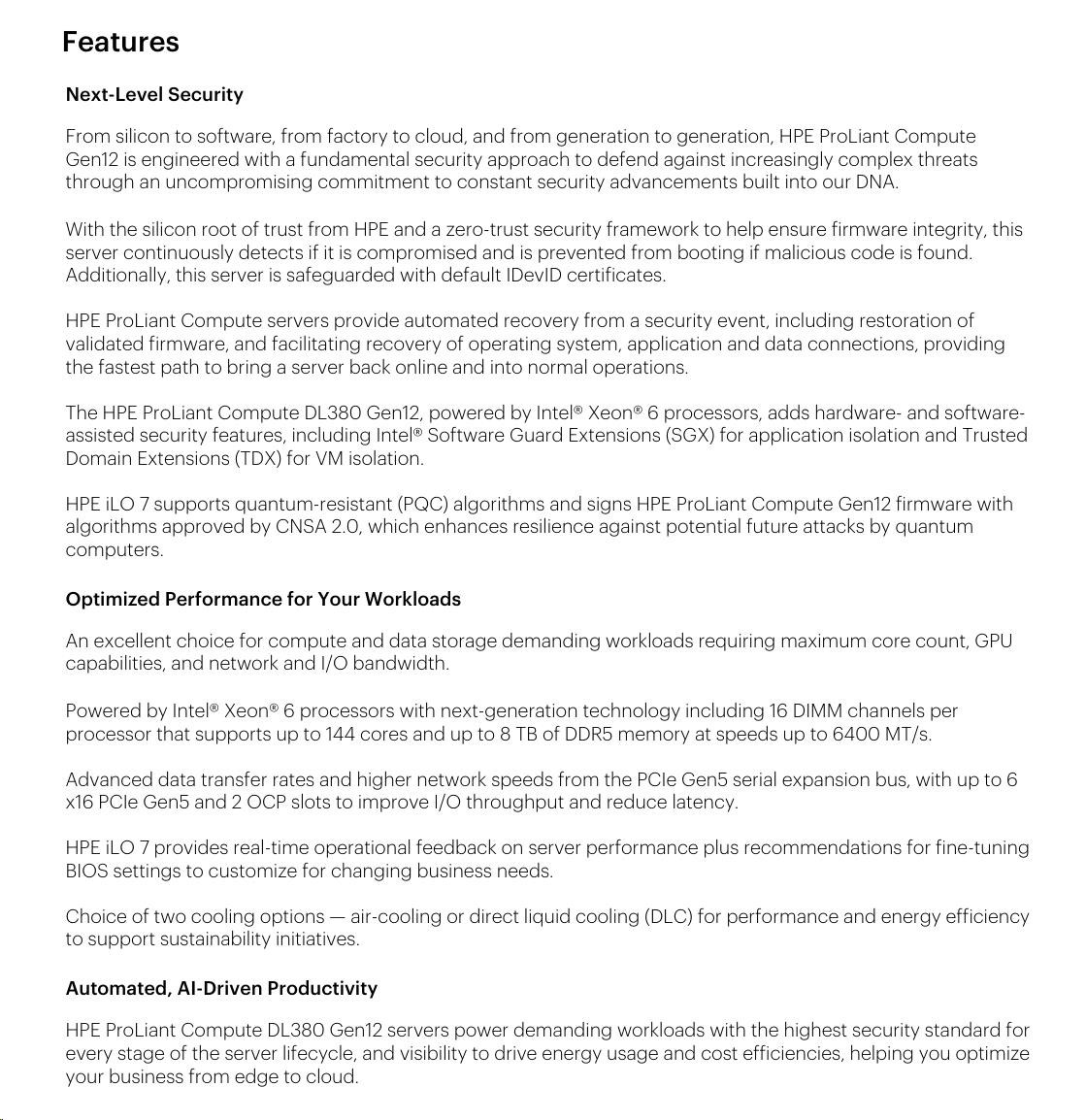 HPE PL DL380g12 6517P (3.2-4.2G/16C) 4x32G (P69727) 8SFF NS204i-uv2 MR408i-o 2x1000W 2p10T NBD333 Smart Choice
