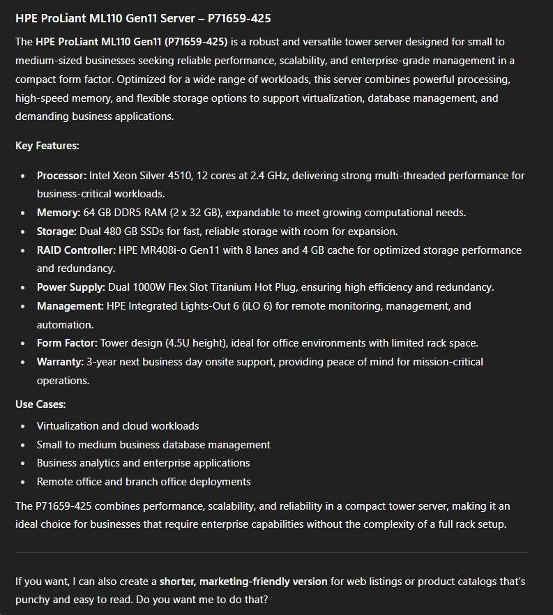 HPE ProLiant ML110 Gen11 SFF Configure-to-order Server |