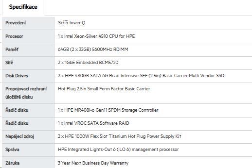 HPE ProLiant ML110 Gen11 4510 12-core 1P 64GB-R MR408i-o 8SFF 2x480GB SSD 2x1000W RPS EU Server |