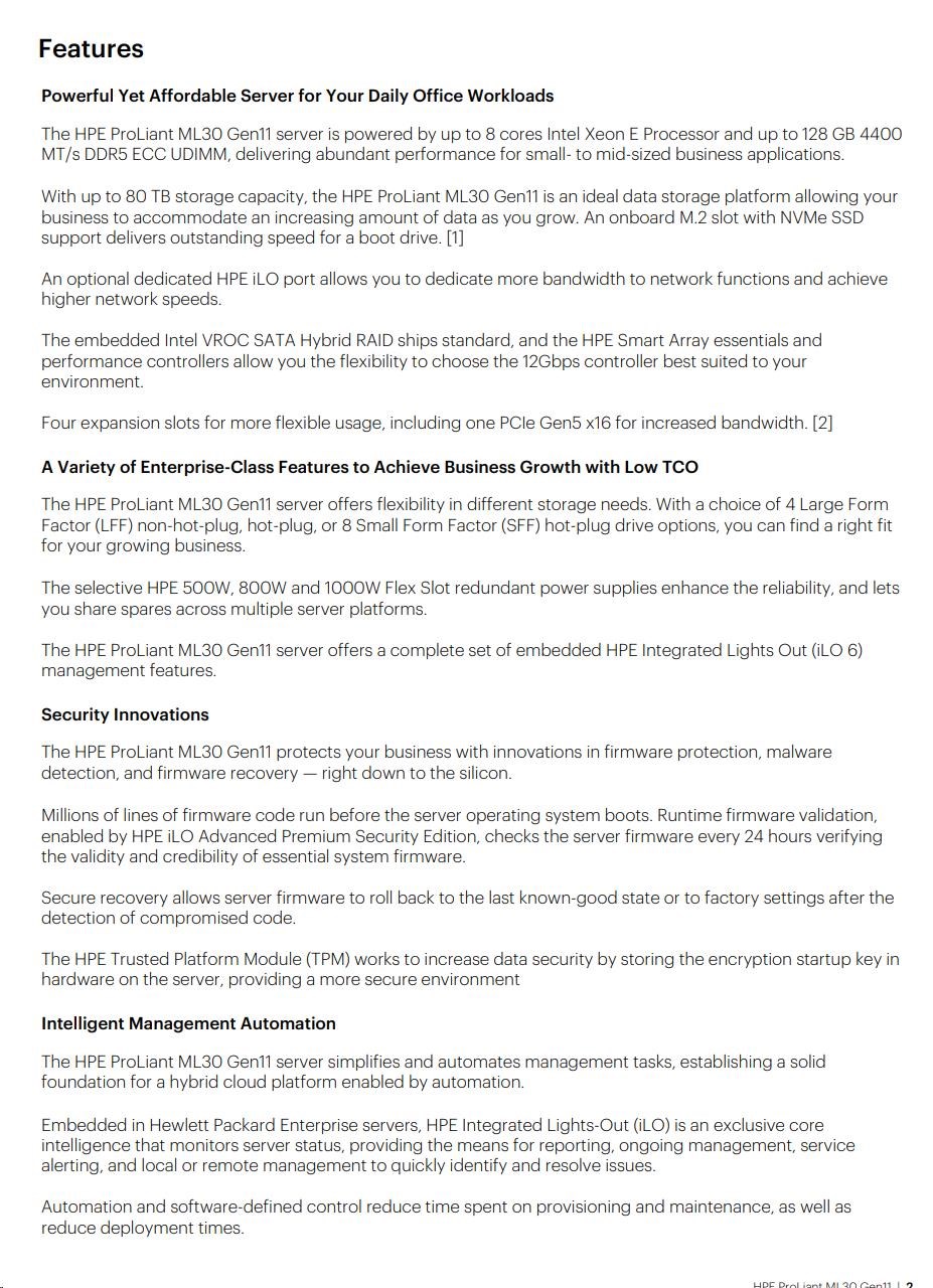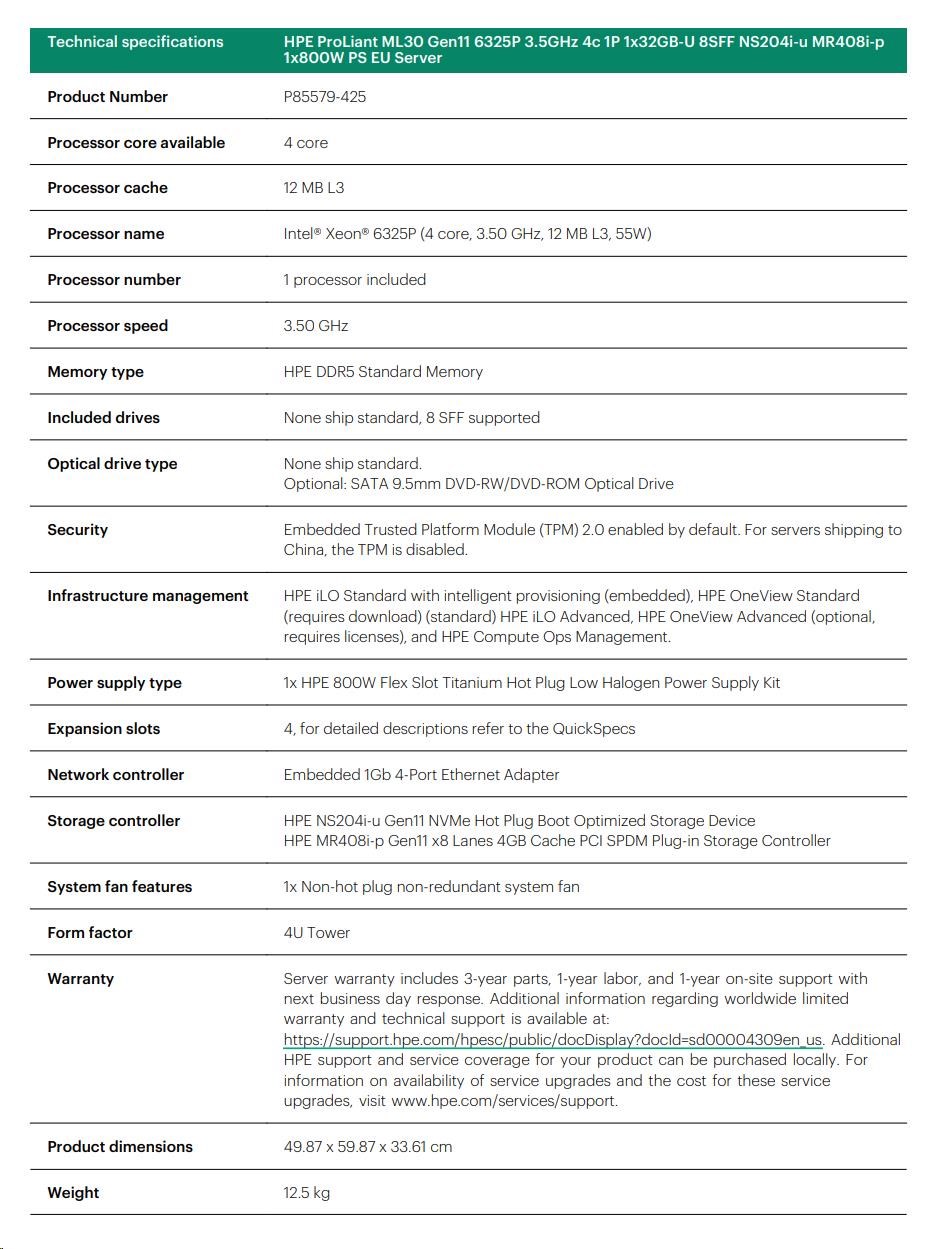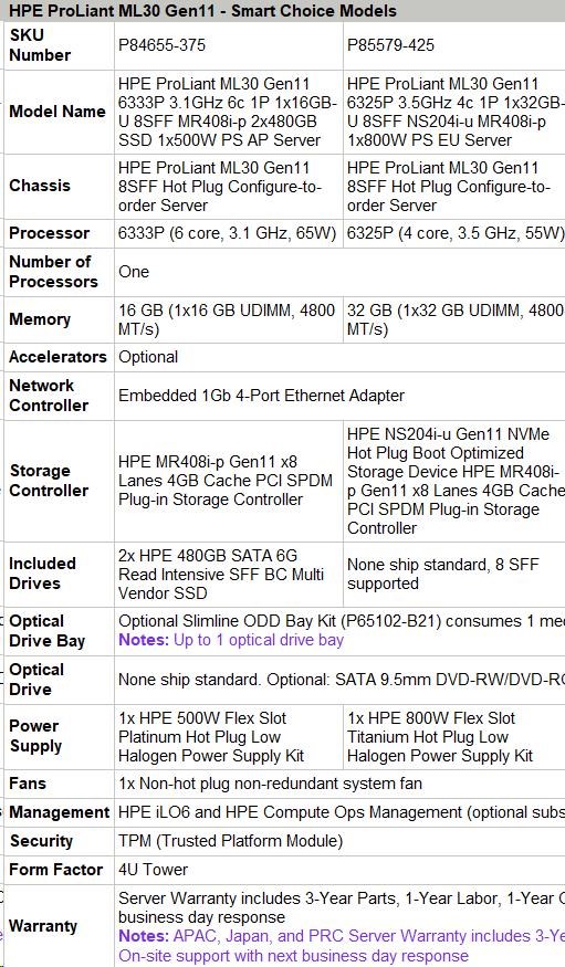 HPE PL ML30 gen11 6325P (3.5G/4C8T) 1x32G 8SFF NS204i-u(2x480g) MR408i-p/4G 2x800W 3/1/1 Smart Choice